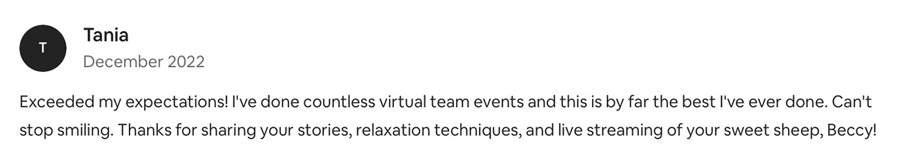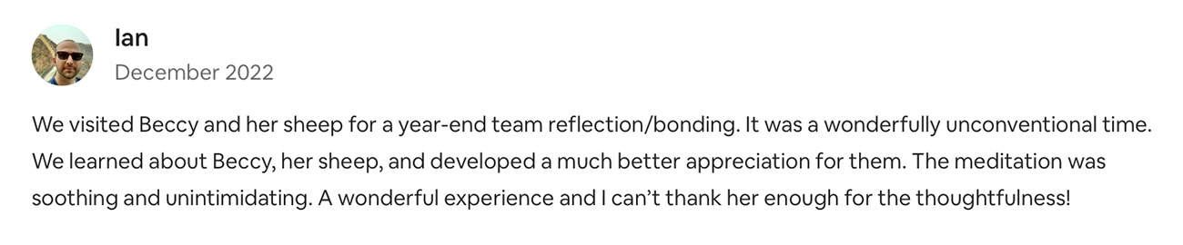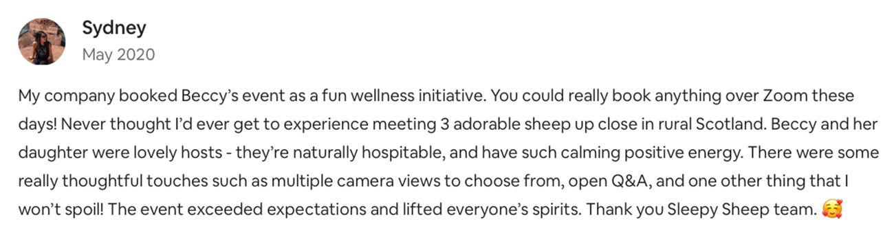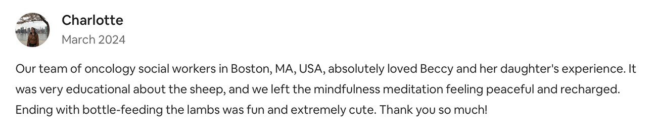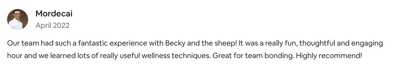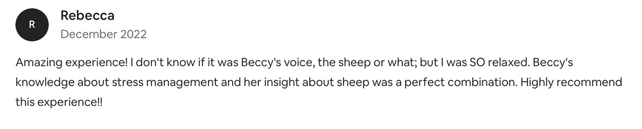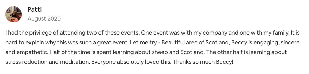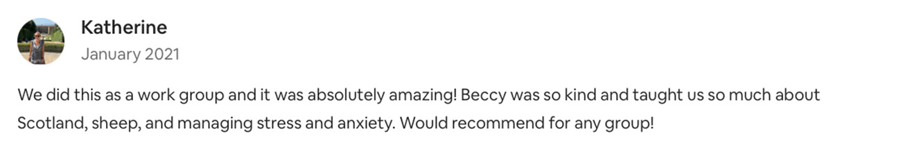 After learning some de-stress techniques to use in your daily life and for remote working, you’ll tiptoe away before lamb Fergus starts shouting for more cuddles.