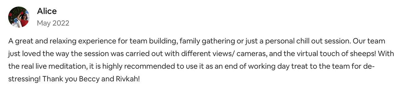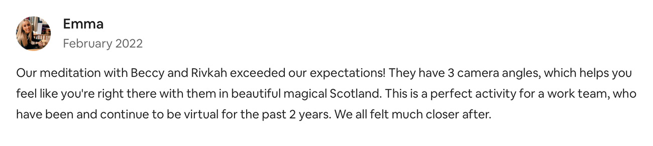Loved this! The guided meditation is one of the best I’ve ever done. Accessible, comfortable pace and clear imagery.