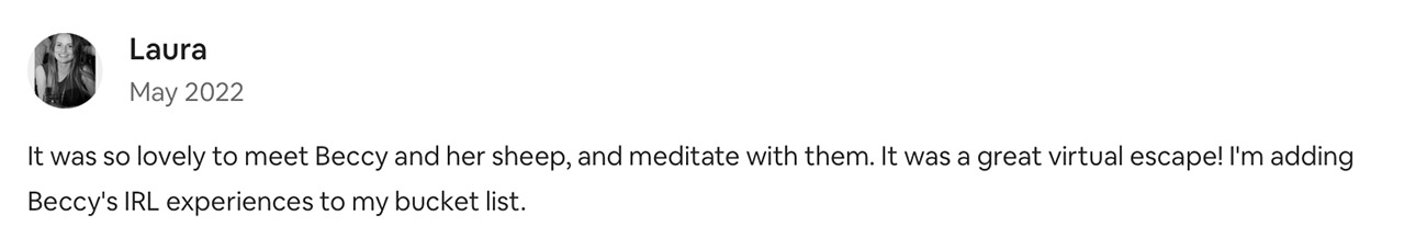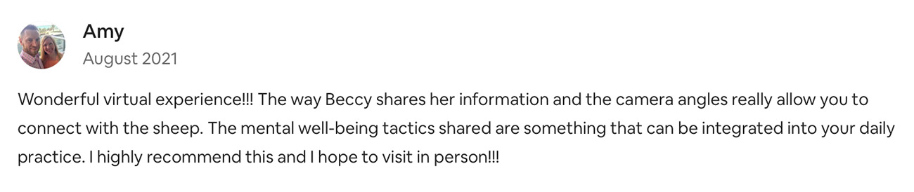 Become part of the flock and look into the half-closed eyes of a contented sheep, then take a cue from these peaceful animals and learn some therapeutic breathing exercises to relax and virtually escape to the calm of the farm. Beccy or her yoga-instructor daughter Rivkah will lead a 15-minute mindful meditation with the sounds of nature to soothe you.